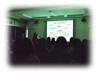 4回生33名による卒業研究発表会を開催しました。朝9時から始まった発表会は昼食と2回の休憩を挟んで17時20分までほぼ予定通り進行しました。また1回生から大学院生まで、多くの学生が聴講し、活発な議論が行われました。昨年と同じ部屋での開催でしたが、机と椅子を更新したため定員オーバーとなり、椅子を他から運ばなければなければならない状況でした。参加者の皆さん、お疲れさまでした。