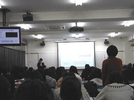 発表会終了後、毎年恒例の3回生主催による予餞会が生協食堂で開催されました。こちらも1回生から大学院生まで、多くの参加があり、盛り上がりました。この中で、恒例の食物栄養学賞(奨励制度参照)の授与が行われました。本年度は3名が受賞し、賞状、金一封が贈呈されました。1回生、2回生、3回生も食物栄養学賞を目指して勉学に励んでください。