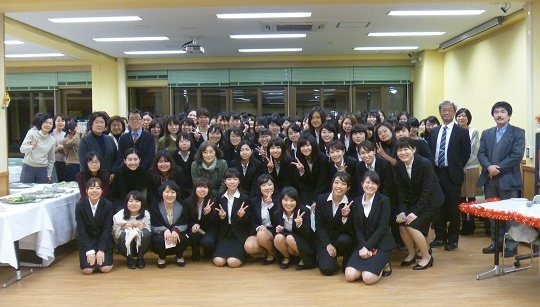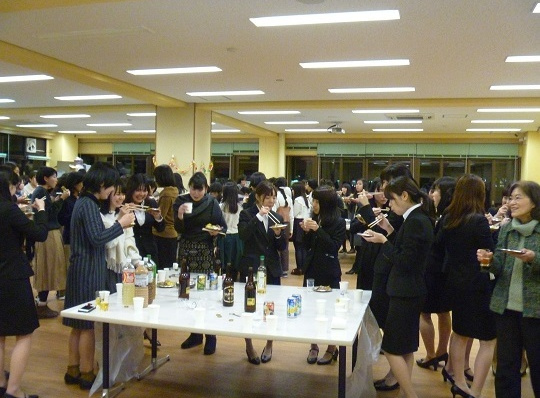 発表会終了後、毎年恒例の3回生主催による予餞会が生協食堂で開催されました。こちらも1回生から大学院生まで、多くの参加があり、盛り上がりました。この中で、恒例の食物栄養学賞(奨励制度参照)の授与が行われました。本年度は3名が受賞し、賞状、金一封が贈呈されました。1回生、2回生、3回生も食物栄養学賞を目指して勉学に励んでください。