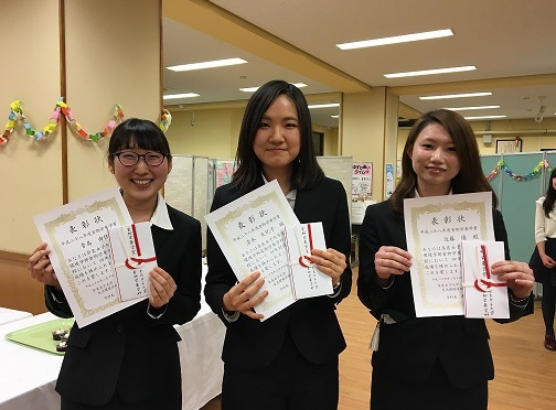 受賞者(近藤優 さん 写真右)と(清水友紀子 さん 写真真ん中)と( 青島由佳さん 写真左)