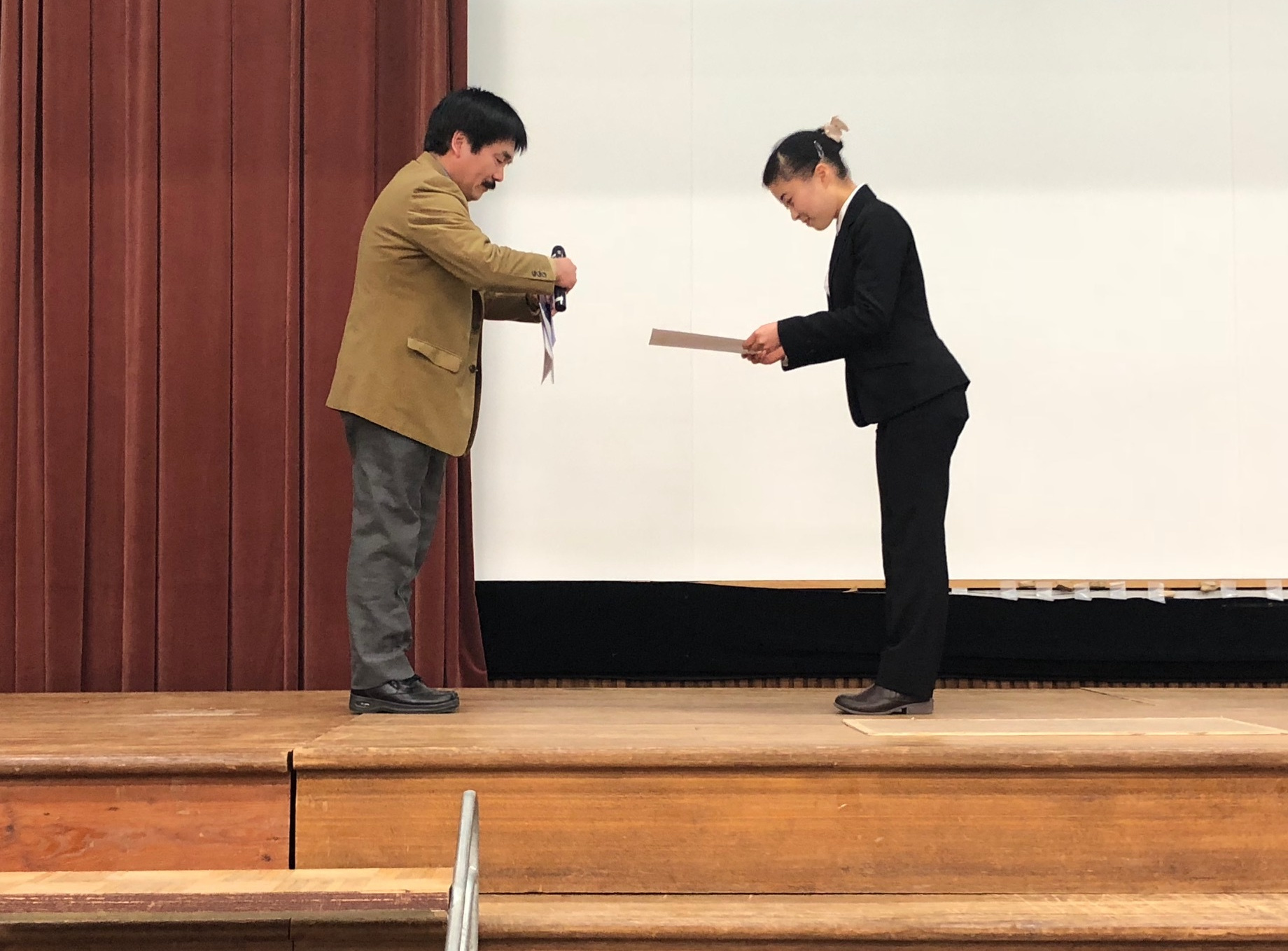 発表会終了後、毎年恒例の3回生主催による予餞会が生協食堂で開催されました。こちらも1回生から大学院生まで、多くの参加があり、盛り上がりました。この中で、恒例の食物栄養学賞(奨励制度参照)の授与が行われました。本年度は3名が受賞し、賞状、金一封が贈呈されました。1回生、2回生、3回生も食物栄養学賞を目指して勉学に励んでください。