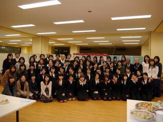発表会終了後、毎年恒例の3回生主催による予餞会が生協食堂で開催されました。こちらも1回生から大学院生まで、多くの参加があり、盛り上がりました。この中で、恒例の食物栄養学賞(奨励制度参照)の授与が行われました。本年度は3名が受賞し、賞状、金一封が贈呈されました。1回生、2回生、3回生も食物栄養学賞を目指して勉学に励んでください。