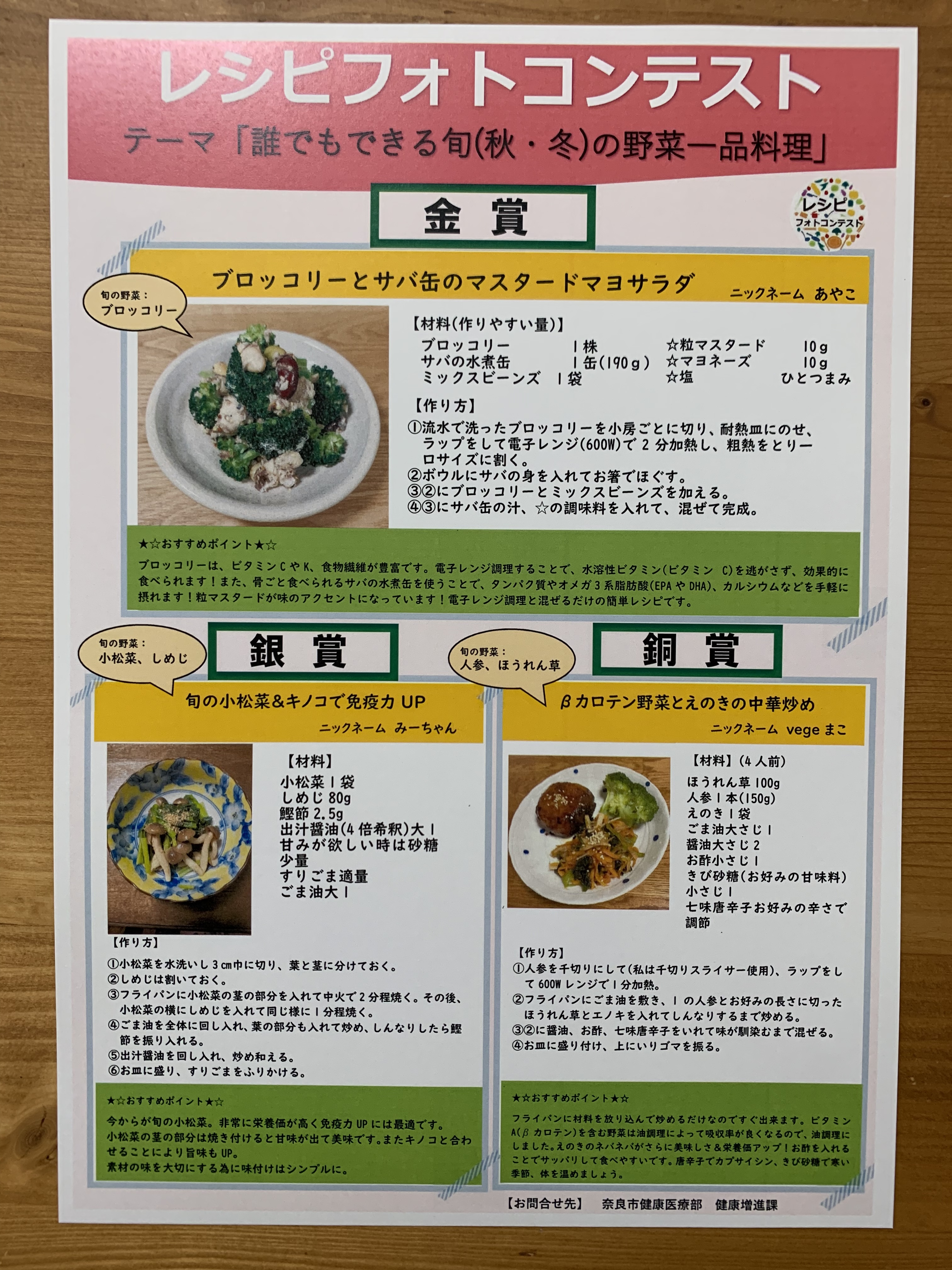 奈良市 健康医療部 健康増進課が開催する第2回レシピフォトコンテストにて、食物栄