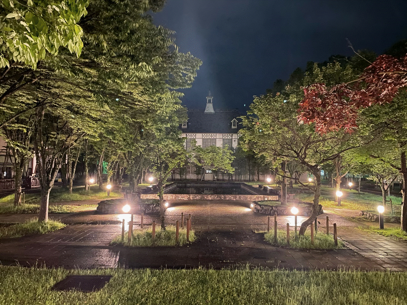 撮影者の腕が良くなく、謎の光が差し込んでいますが、かえって記念館をあやしく照らしているように見えます…。