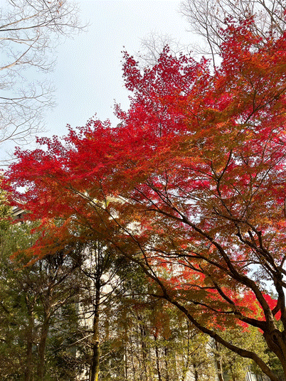 写真は記念館裏の紅葉です。真っ赤に色づいていて綺麗だったので写真を撮ってみました📸