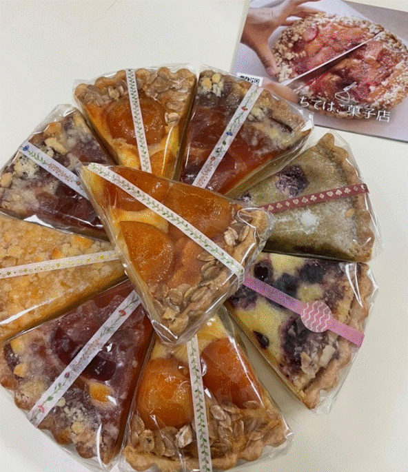 17日の修士学位論文発表会の後、お茶室係の企画により、ちてはこ菓子店のタルトを一人ひとつずつもらいました。