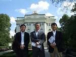 本島清人先生(明治薬大)、原俊太郎先生(昭和大薬)とともに、会場前で写真を撮影しました