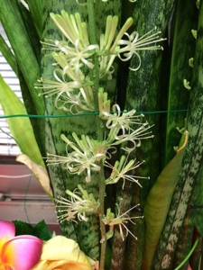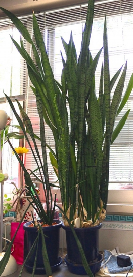 その際、自宅から持ってきたサンセベリアという植物がありますが、大学で元気に生きています。当時持ってきた2株はほとんど同じ大きさでしたが、日当りの良い部屋で育てたもの(右側:私の居室)と、日当りの悪い部屋で育てたもの(左側:実験室)では、10年の間で成長に大きな開きが出てきました。最近、学生はあまり水やりをしてくれていないようで、以前からと比較しても左側は小さくなった印象で、それでも生きているので、この植物の生命力に驚きます。一方、右側は鉢一杯となり、植え替えをしていないので、子孫を残そうと、つぼみが出てきました。いずれにせよ、同じ遺伝子でも環境によって大きな差がでることを考えると、教育の大切さを感じます。